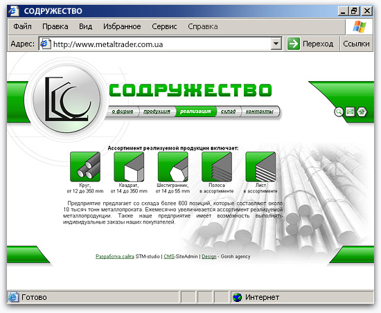Main / FOLIO / Websites 2 getimagesize(): Filename cannot be empty in a "/var/www/enDoaF/en.goroh.ua/lib/content.lib.php" [434] Site for trading house “Sodruzhestvo”.![]() ![]() www.metaltrader.com.ua © Goroh agency, 2007. Customer: TH “Sodruzhestvo”. Coordination from Customer’s side: Volodenkov Gennadiy. Project managers: Garagulya Oleg, Shkitsa Taras. Websites |